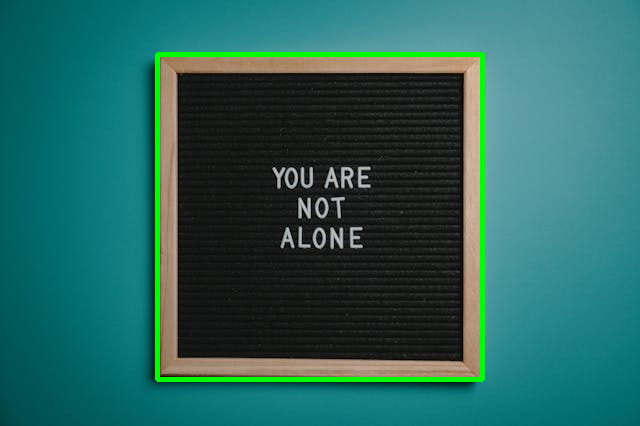 - 原文:A framed sign reading “YOU ARE NOT ALONE”.